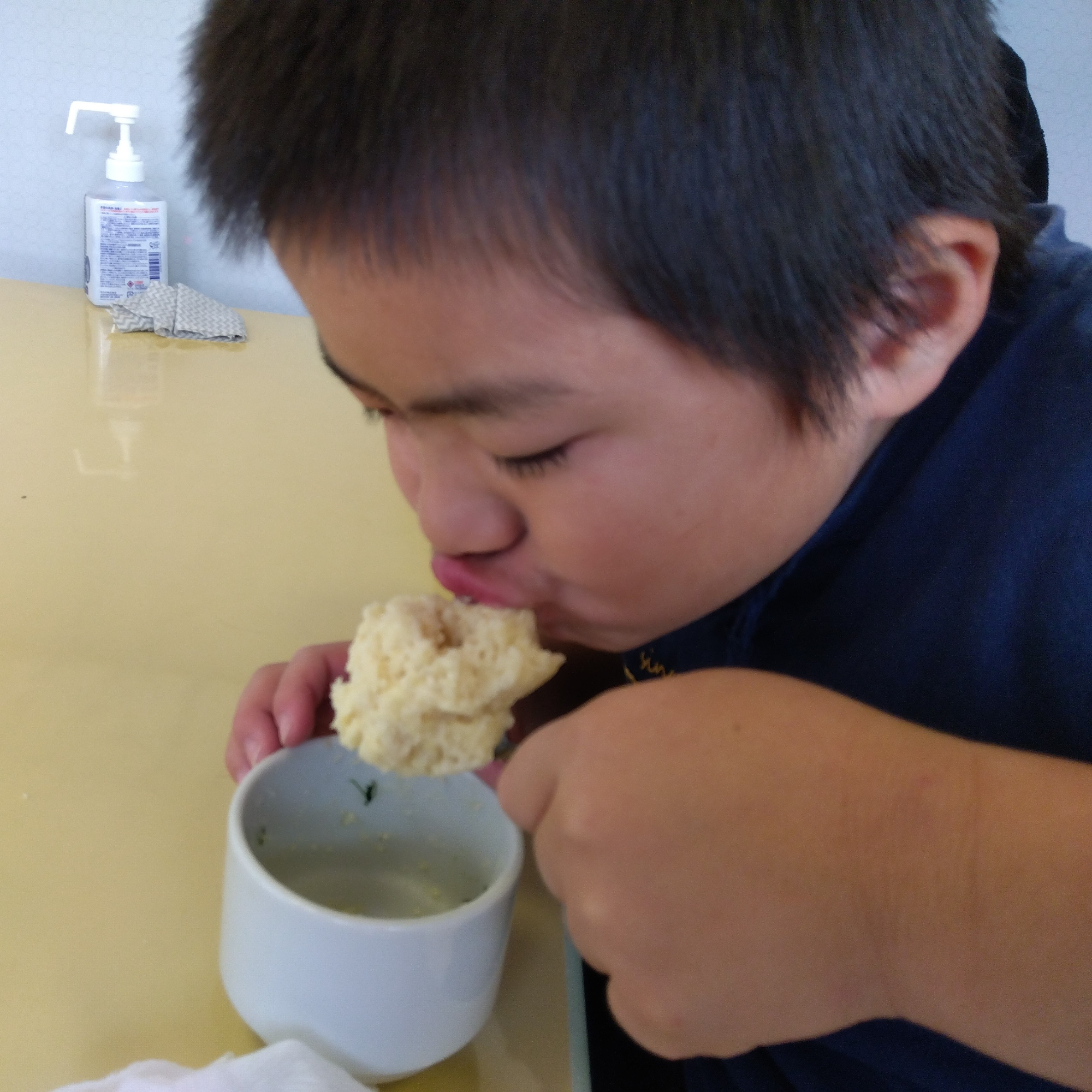 「ほうれん草の味がしない。ホットケーキミックスの量が多かったからかな」