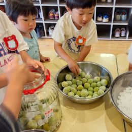 馬場どろんこ保育園「梅ジュース・梅干しづくり」