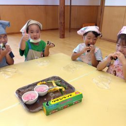 一宮どろんこ保育園「梅干しおにぎりを作るよ 」