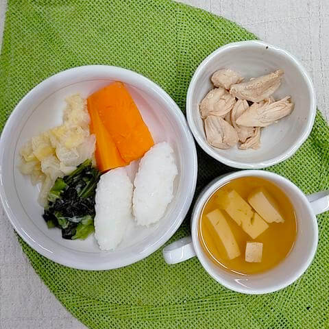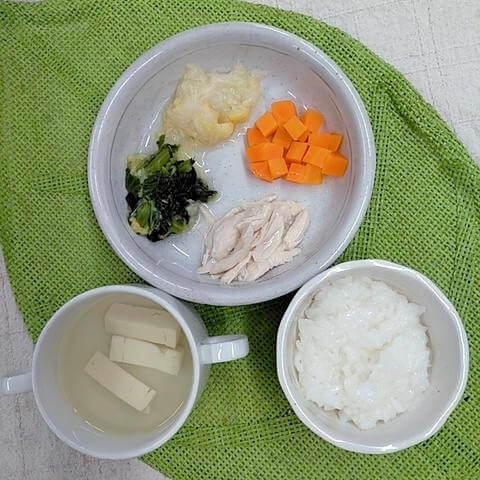 離乳食は子ども一人ひとりの発達に合わせて食材の大きさや切り方を変えています。7ヶ月を過ぎたら自動的に中期食に移行するということはせず、日々の食事の様子を見て調理に反映していきます。