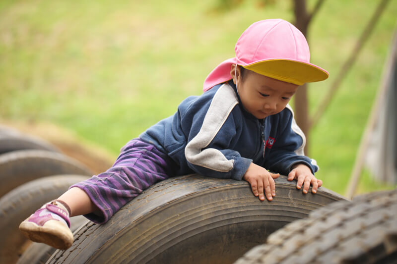 この「移動保育」を、グループ内で実現するのがどろんこ会の特徴。どろんこ会の駅前型保育園では、近くの郊外型保育園に移動保育をすることで、たくさんの野外体験の機会を設けています。