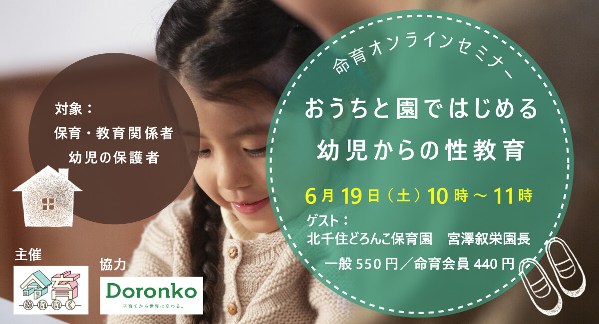 性教育メディア命育®(運営:Siblings合同会社)が主催する「おうちと園ではじめる『幼児からの性教育』」のオンラインセミナーに、北千住どろんこ保育園(東京都足立区) 園長が登壇することになりました。