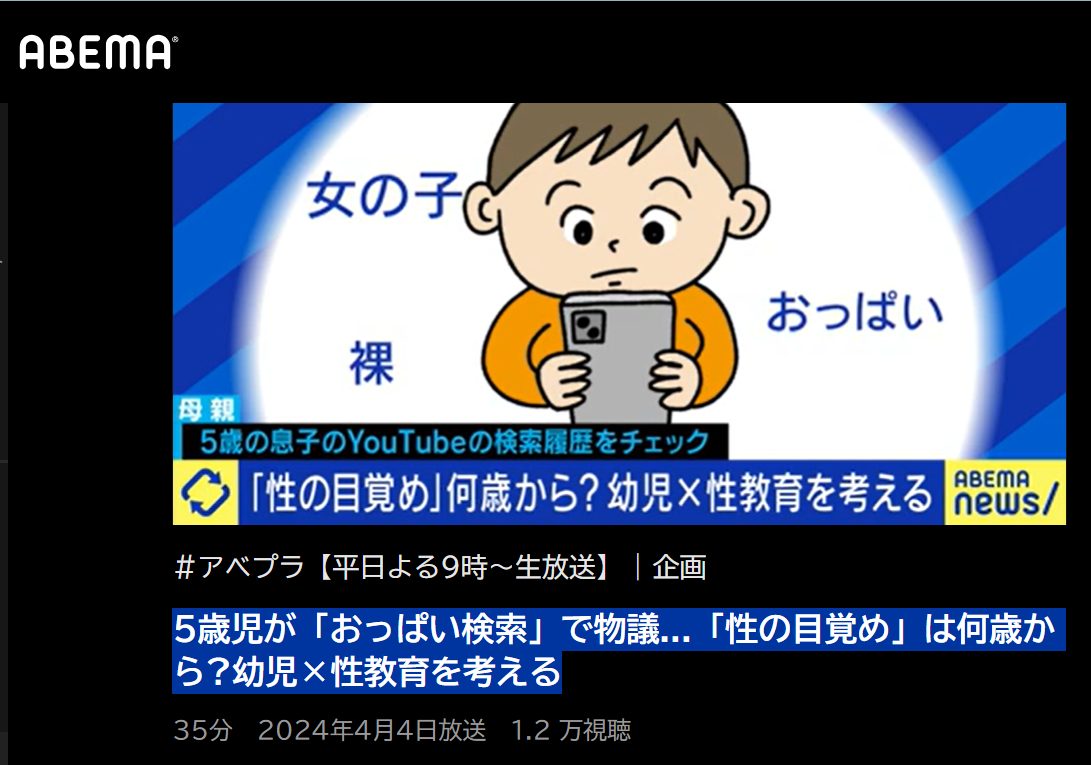 ABEMA Primeでどろんこ会グループの性教育意識調査が取り上げられました