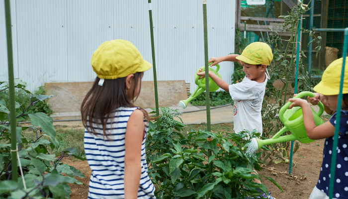 毎日、午前中は、畑仕事を行います。耕し・苗植え・水やり・間引き・収穫を行う他、自分たちで育てたものを料理したり、ケチャップ・梅干し・たくあんなどをつくったりします。