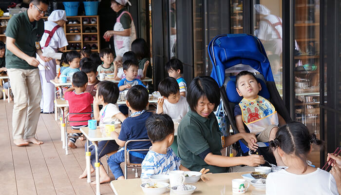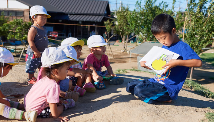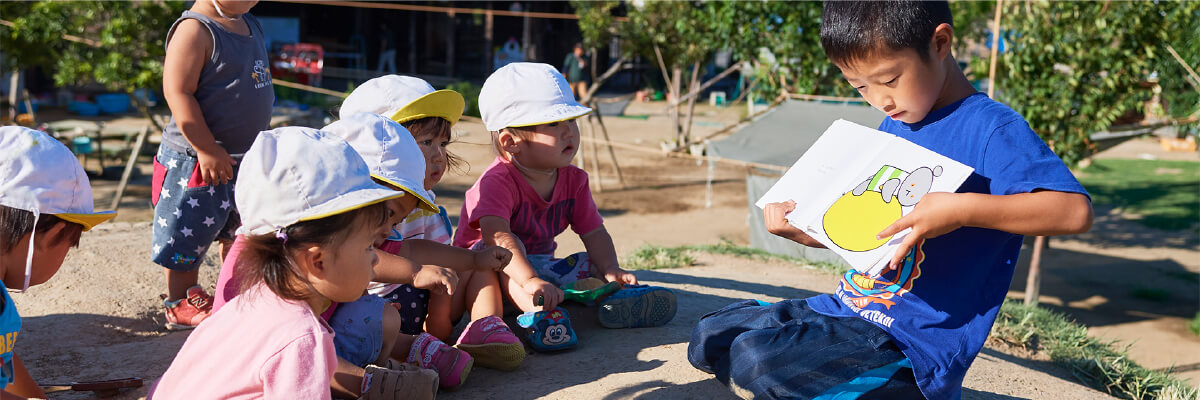 年齢が違う子同士、すべての子が、やってみたいこと、思い通りにならないこと、すべて実際に経験するために0~5歳児が共に暮らし、頼りあい、ぶつかりあい、教えあいます。大きい子が中心になって、遊ぶ相手・場所・内容を子ども自らが選択し、大まかな時間割を自分たちで見通しを立てて行動します。0~1歳児については、愛着形成と個々の発達支援を大切にし、学年別に分けるのではなく、歩行の確立など、発達段階に合わせた保育を行います。