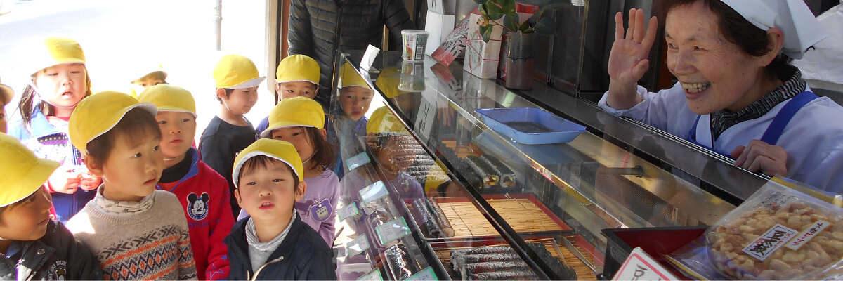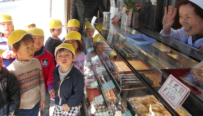 地域交流・様々な仕事を目にする・地域の大人と目を見て話す…を目的として、週1回、サービス・金融・流通・製造など、地域の様々なお店・会社を訪問します。”店長さんへの質問タイム”では、子ども自らがお店・会社の方に質問をして、直接教えていただきます。