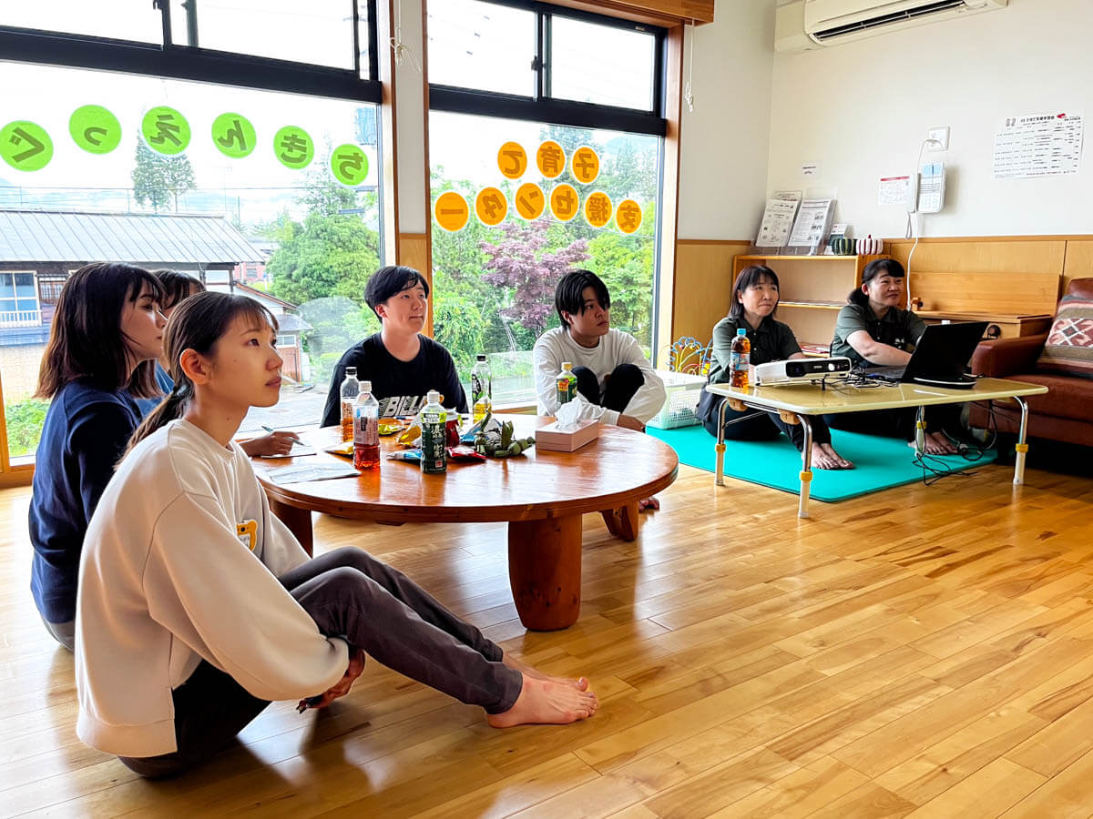 保育体験後、夜は南魚沼どろんこ保育園のスタッフとの食事会も開催。施設長や先輩の現場のリアルな話を聞くことができるのも、このツアーならではです。