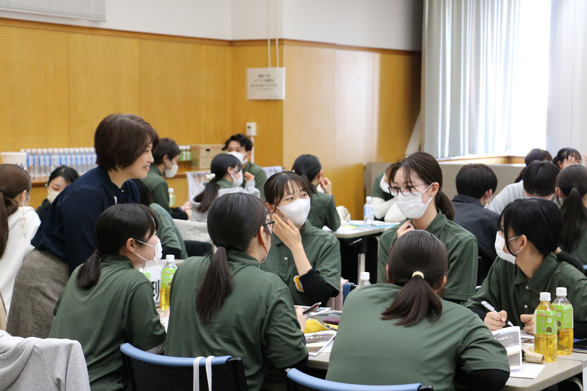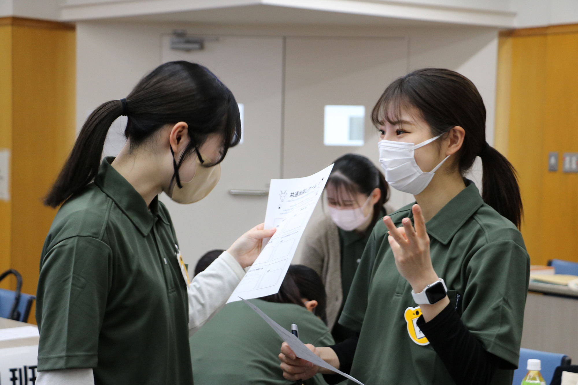 - 同期はいるのかなと不安でしたが、同じ地域の同期たちと班が一緒で研修を通して仲良くなることができて安心しました。また、施設長からの説明がとても分かりやすく学びになり、策定会議での行事についても初めて考えることができました。