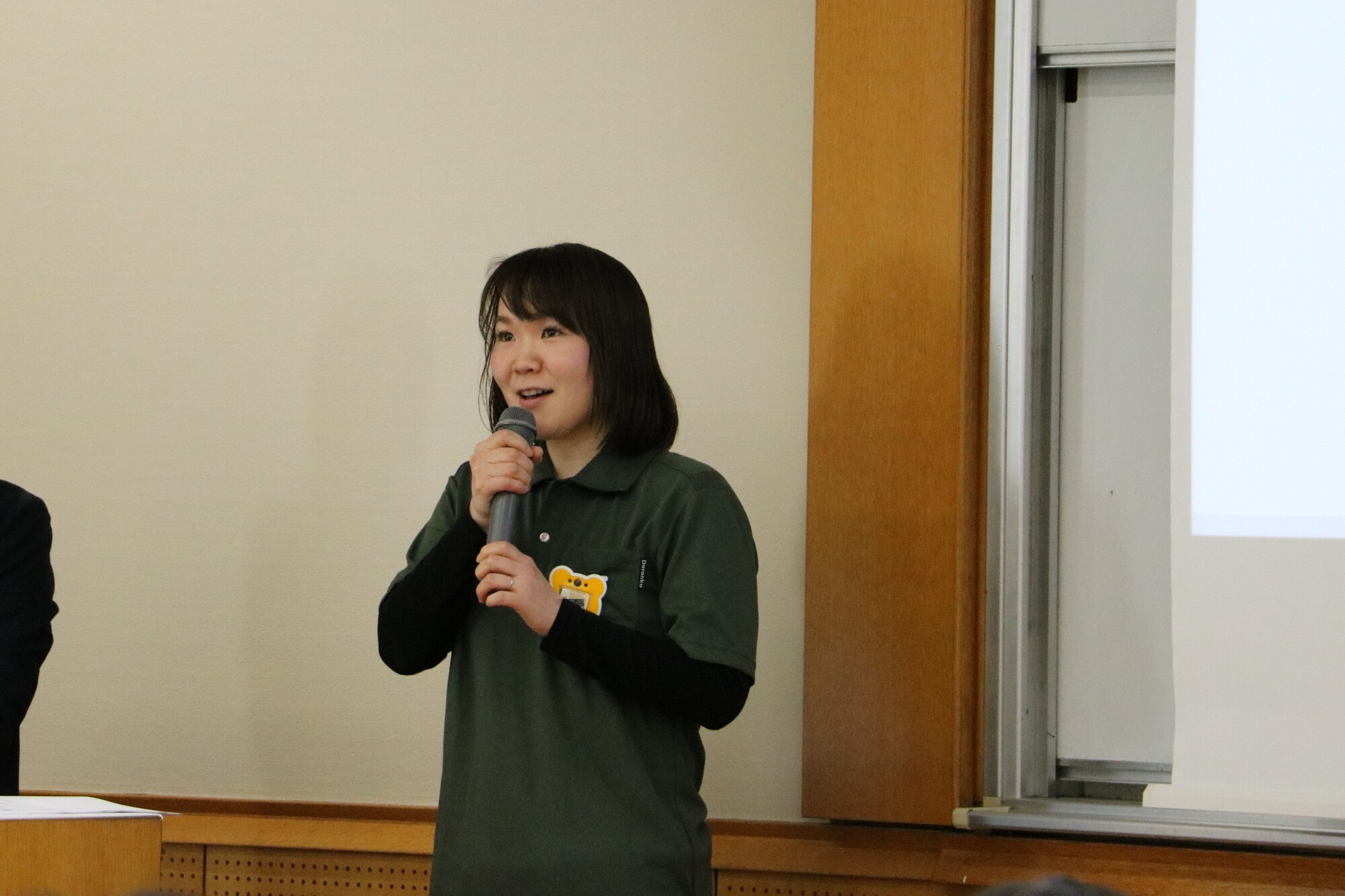 また、子どもたちの「生きる力」を育むためには、保育者自身に「生きる力」が必要です。保育者の生きる力向上を目指してスタートしたどろんこ会グループの海外研修プログラム「デンマークインターンシップ」に参加し、ちょうど帰国したばかりの先輩スタッフも駆けつけました。デンマークでの保育体験から得られた学びを語りました。