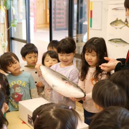 そして、私たちは普段、『命あるものを食している』ということを経験から教えるために、保育士・専門士・調理員達と子どもがいっしょに、魚をさばいて焼いて食べたり、鶏を絞めて焼いて食べたり…という「命をいただく経験」も必要だと考え、様々な取り組みを実際に行っています。